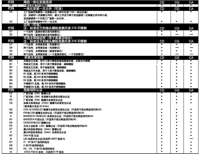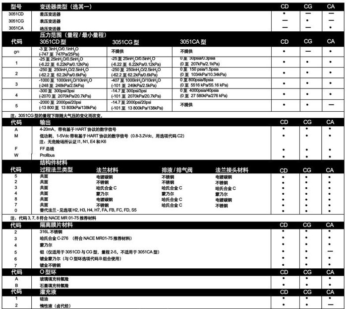 羅斯蒙特3051CD選型列表: